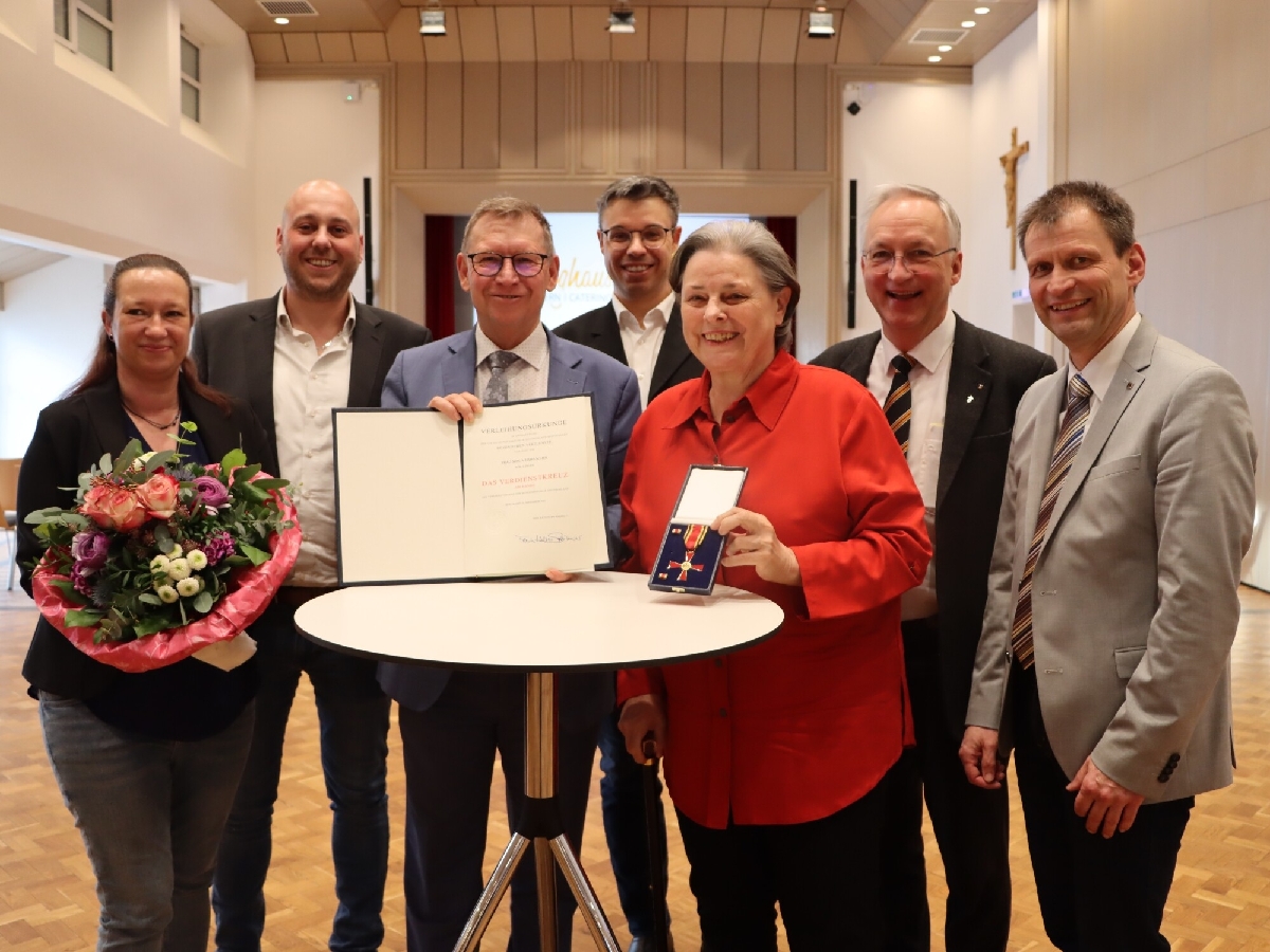 In einer kleinen Feierstunde am 2. März 2026 im Kolpinghaus in Augsburg überreichte Stefan Rößle, Landrat im Landkreis Donau-Ries, der ehemaligen Kolping-Diözesanvorsitzenden Sonja Tomaschek für ihr ehrenamtliches Engagement das Bundesverdienstkreuz am Bande. „Frau Tomaschek hat sich über mehrere Jahrzehnte hinweg mit außergewöhnlichem Engagement im sozialen und kirchlichen Bereich verdient gemacht, insbesondere innerhalb der Kolpingsfamilie und des Kolpingwerkes auf örtlicher, diözesaner, landes- und bundesweiter Ebene“, begründete Rößle die Verleihung des Verdienstordens der Bundesrepublik Deutschland durch Bundespräsident Frank-Walter Steinmeier.