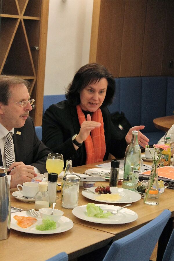 Wie immer wurde in die knappe Stunde vor Plenumsbeginn neben Kaffee und Semmeln auch das Schwerpunktthema des Treffens gleich hineingepackt und mit den hoch interessierten Abgeordneten diskutiert. Zur Thematik der Erwachsenenbildung stellte Diözesangeschäftsführer Ewald Kommer aus dem DV Eichstätt die Leistungen der Erwachsenenbildung in der Fläche vor. Niederschwellig sollen die Angebote der Erwachsenenbildung sein, flächendeckend und vielfältig. Kleinere und insbesondere ehrenamtlich geführte Träger stehen da oft vor dem Problem, die gesteigerten bürokratischen Anforderungen der Förderung aus strukturellen und personellen Gründen nicht mehr erfüllen zu können. Axel Möller, Vorstandsvorsitzender des Kolping-Bildungswerkes Bayern und Dr. Christian Hörmann von der KEB-Bayern bekräftigten diese Einschätzung und baten die Abgeordneten bei der Diskussion um das Erwachsenenbildungsförderungsgesetz (EbFöG) die praxiserprobten und praxisorientierten Erfahrungen der Einrichtungen und Verbände vor Ort einfließen zu lassen. Für die Berichterstatterin dieser Thematik in der CSU-Fraktion, Frau Dr. Ute Eiling-Hütig (MdL), stießen die besorgten Ausführungen der Bildungsfachleute offene Türen auf! Es sei oft unverständlich, welche Anforderungen von den Aufsichtsbehörden immer wieder formuliert und oft fern jeglicher Praxis den Trägern auferlegt würden. Man war sich einig, dass Subsidiarität und der politische Wille für eine Sache letztlich mehr zählen müssen, als überzogenes Aufsichtshandeln. Sichtlich erfreut über die große Resonanz der Einladung zeigte sich der stellv. Landesvorsitzende Erwin Fath als Gastgeber seitens des Kolpingwerkes Bayern. Joachim Unterländer (MdL) seinerseits für die Fraktion. Am Parlamentarischen Frühstück nahmen neben den bereits genannten teil: Landtagspräsidentin Barbara Stamm, die Staatssekretäre Bernd Sibler und Johannes Hintersberger, die Abgeordneten Erwin Huber, Thomas Huber, Eberhard Rotter, Oliver Jörg, Berthold Rüth, Hans Herold, Otto Hünnerkopf und der Aufsichtsratsvorsitzende des Kolping-Bildungswerkes Bayern und MdL Thomas Goppel. In der Kolpingdelegation nahmen weiter die Landesleiterin Kathi Maier, Jugendreferentin Lena Loy und Landesgeschäftsführer Willi Breher teil. Am Ende lud Präses Msgr. Christoph Huber die Abgeordneten ein zur Unterstützung des Projektes "Jobartisten". Das Projekt richtet sich an junge Menschen, besonders an Geflüchtete unter 28 Jahre. Träger ist die gemeinnützige Kolping-Bildungsagentur in München (www.jobartisten.de). Da man sich mit dem Projekt am Deutschen Integrationspreis der Hertie Stiftung über ein sog. Crowdfunding beteiligen möchte, machte Joachim Unterländer schon gleich mit seiner Eintragung im Internet zur Unterstützung mit (www.startnext.com/kolping-jobartisten). Die Kolpingleute hoffen auf zahlreiche Einträge für dieses tolle Jugendprojekt.