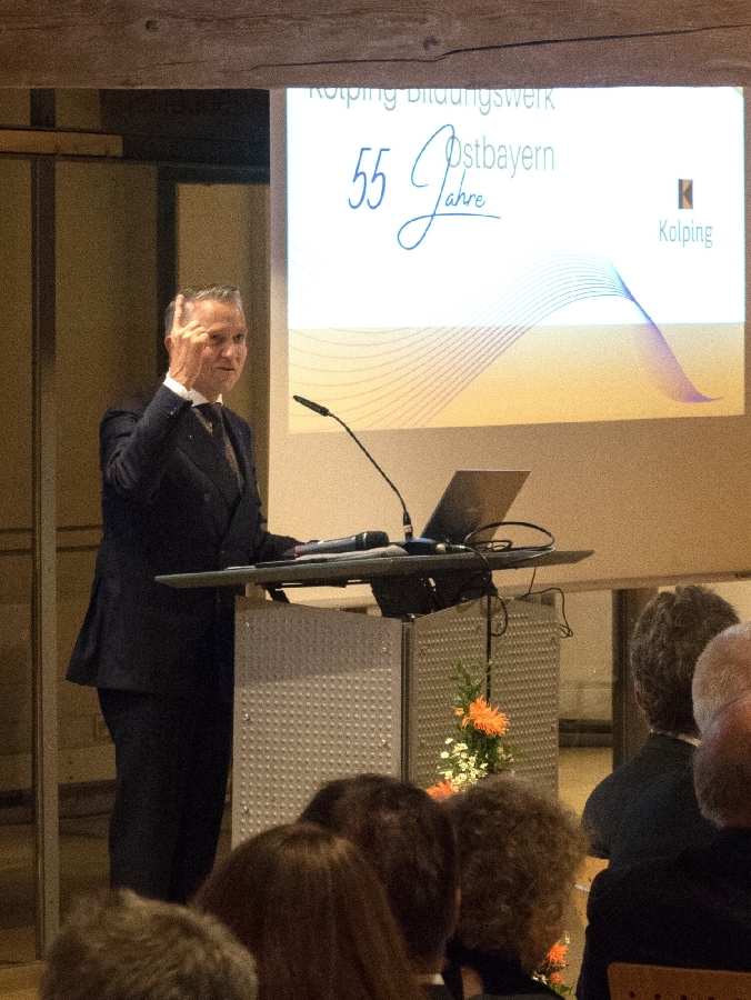 Nach der offiziellen Begrüßung durch Aufsichtsratsvorsitzenden Prof. Dr. Weber zeigte Thomas Huber, MdL und Vorsitzender des Aufsichtsrats des Kolping-Bildungswerkes Bayern, in seinem Impuls „Bildung im Wandel der Zeit“ die Herausforderungen der Zukunft für das Kolping-Bildungswerk auf.